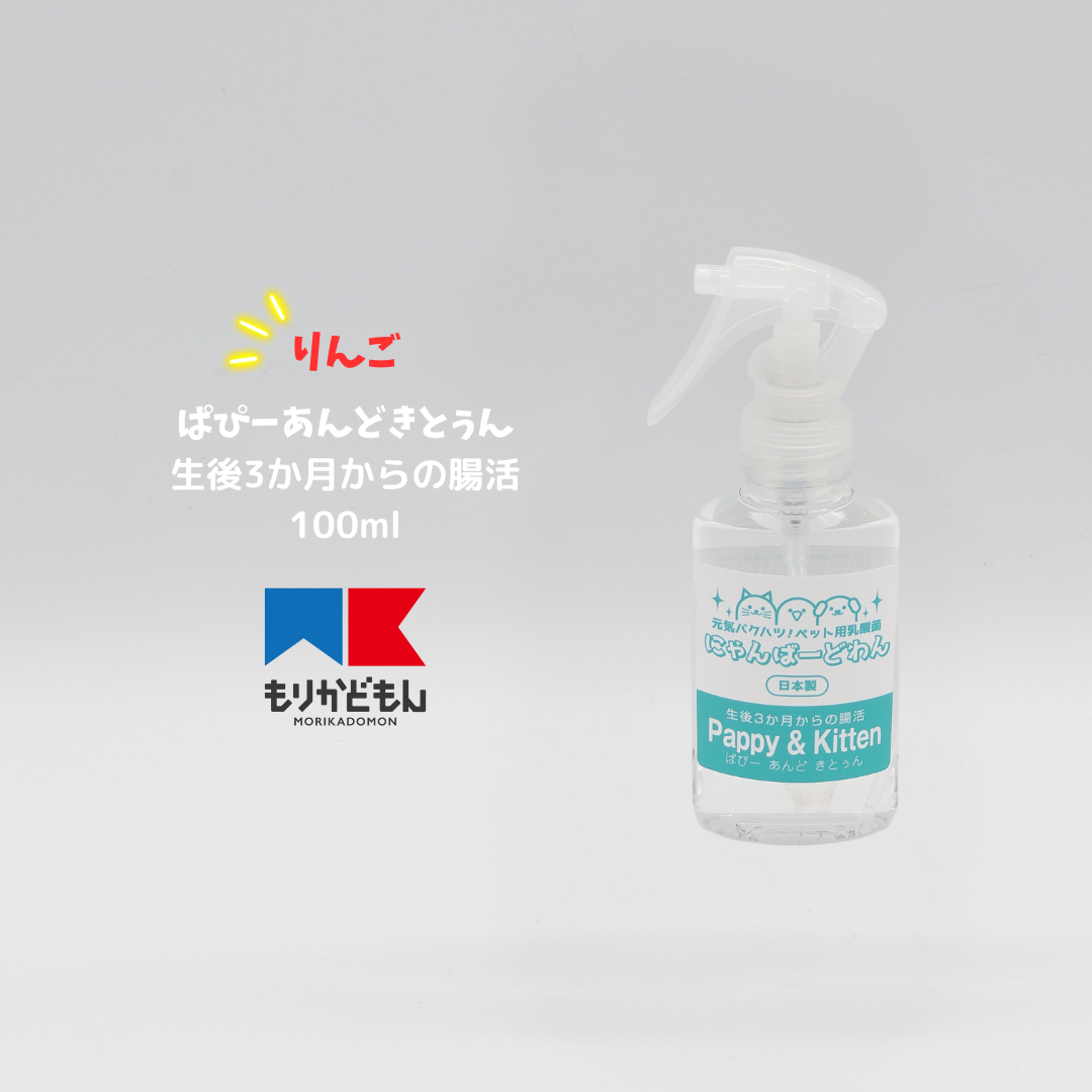生後3か月から使用できるりんごを原料に開発したペット専用の植物性由来乳酸菌飲料です。竃方の塩が適量入っているので天然のミネラルも自然に補給できます。また、ペットへの与え方は普段のフードにかけるだけなので手間がいらずお手軽です。